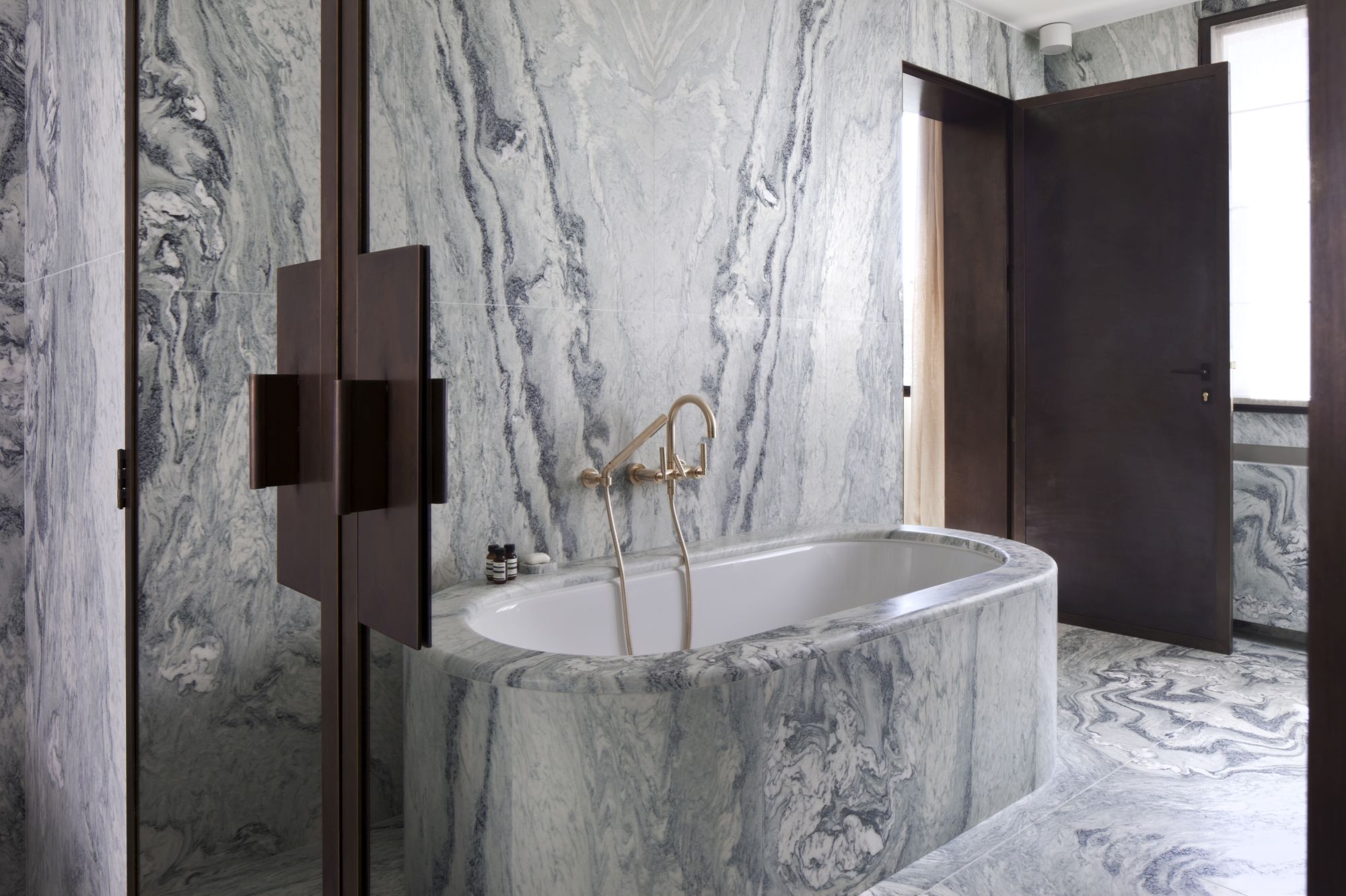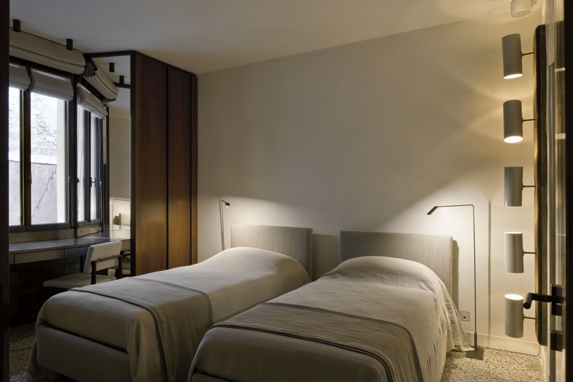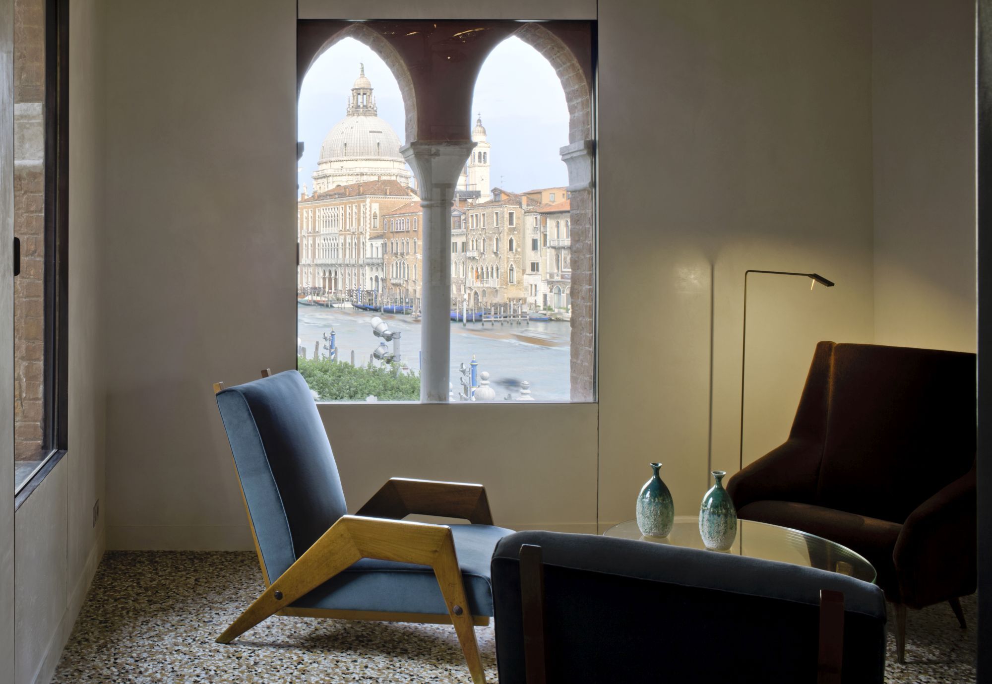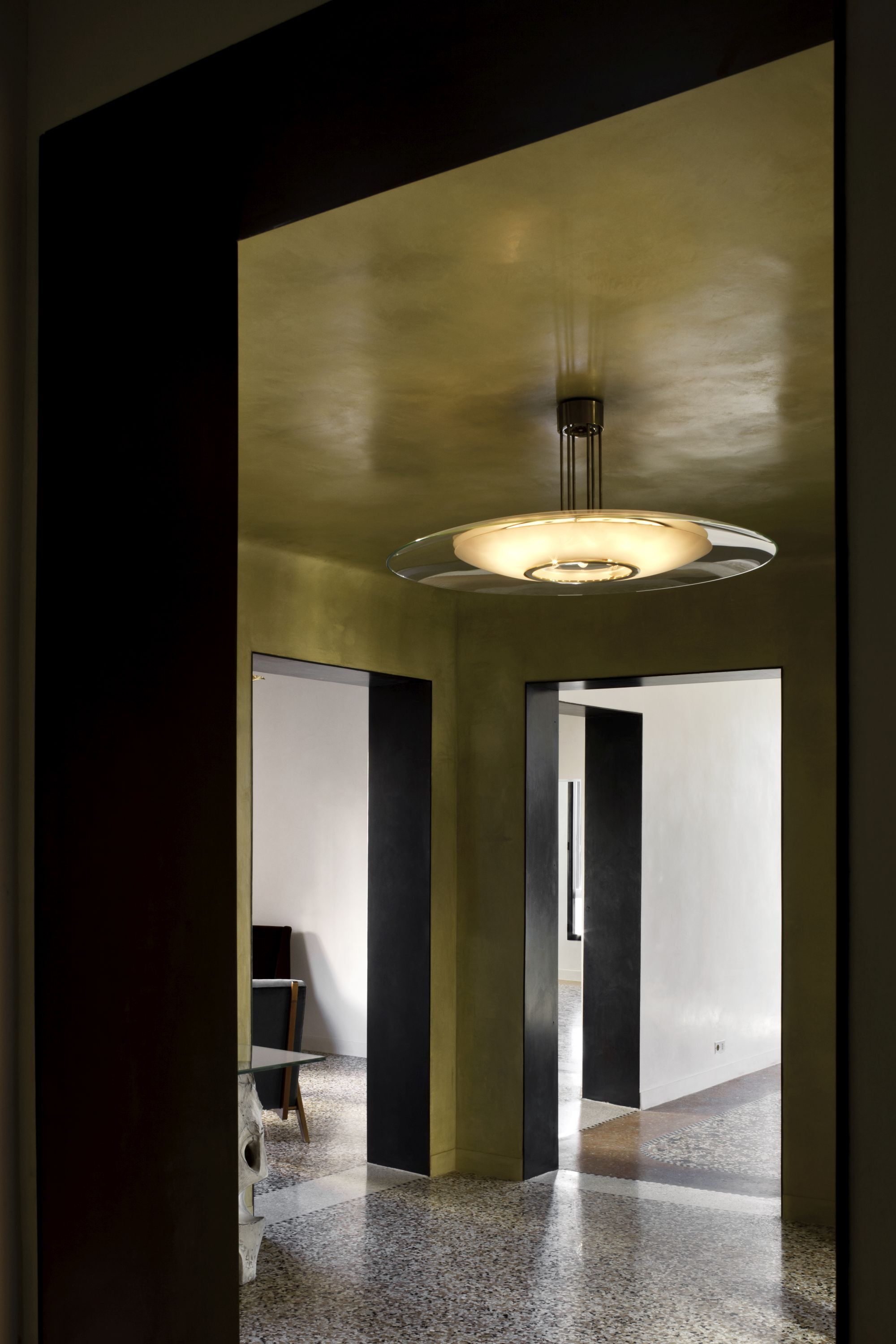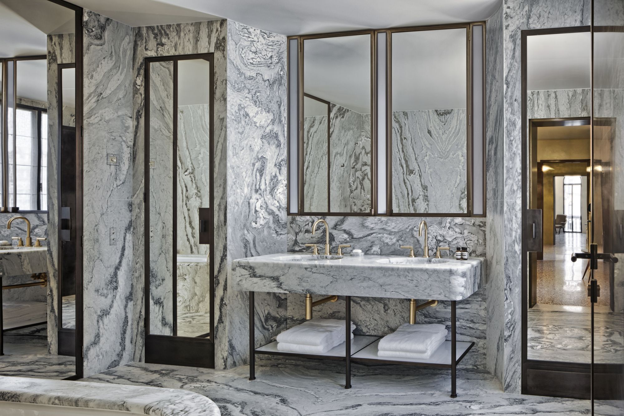 Renovation of a residential unit in Venice, mixing steel frames and precious marbles, pieces of vintage furniture and expressly designed elements.