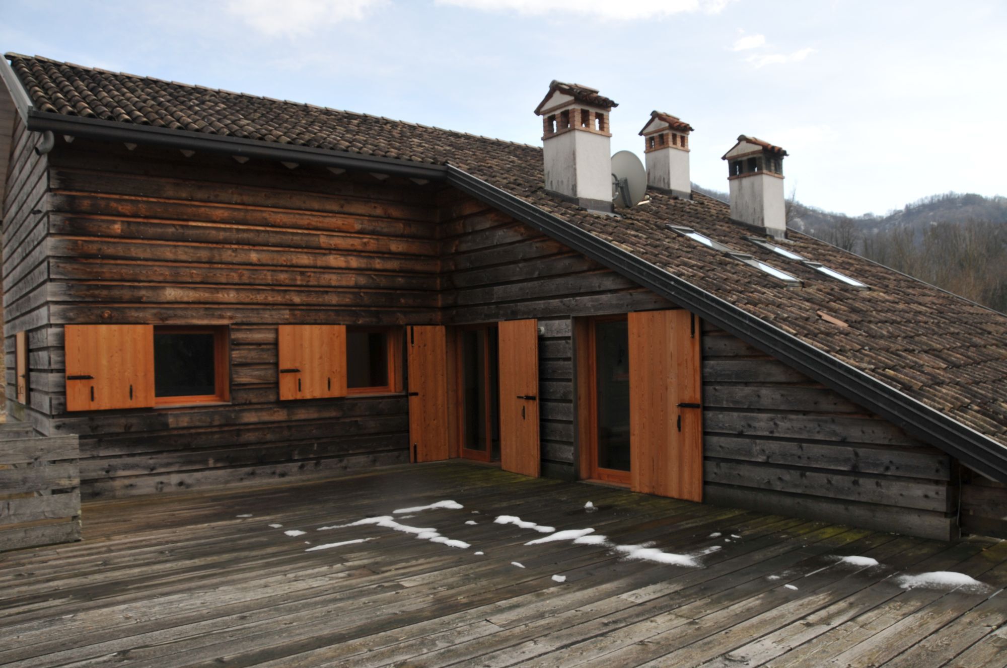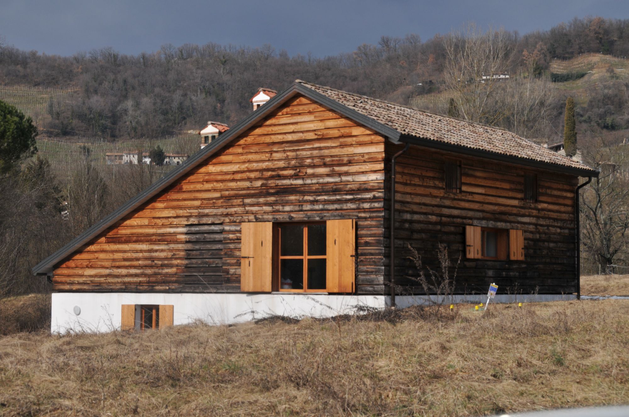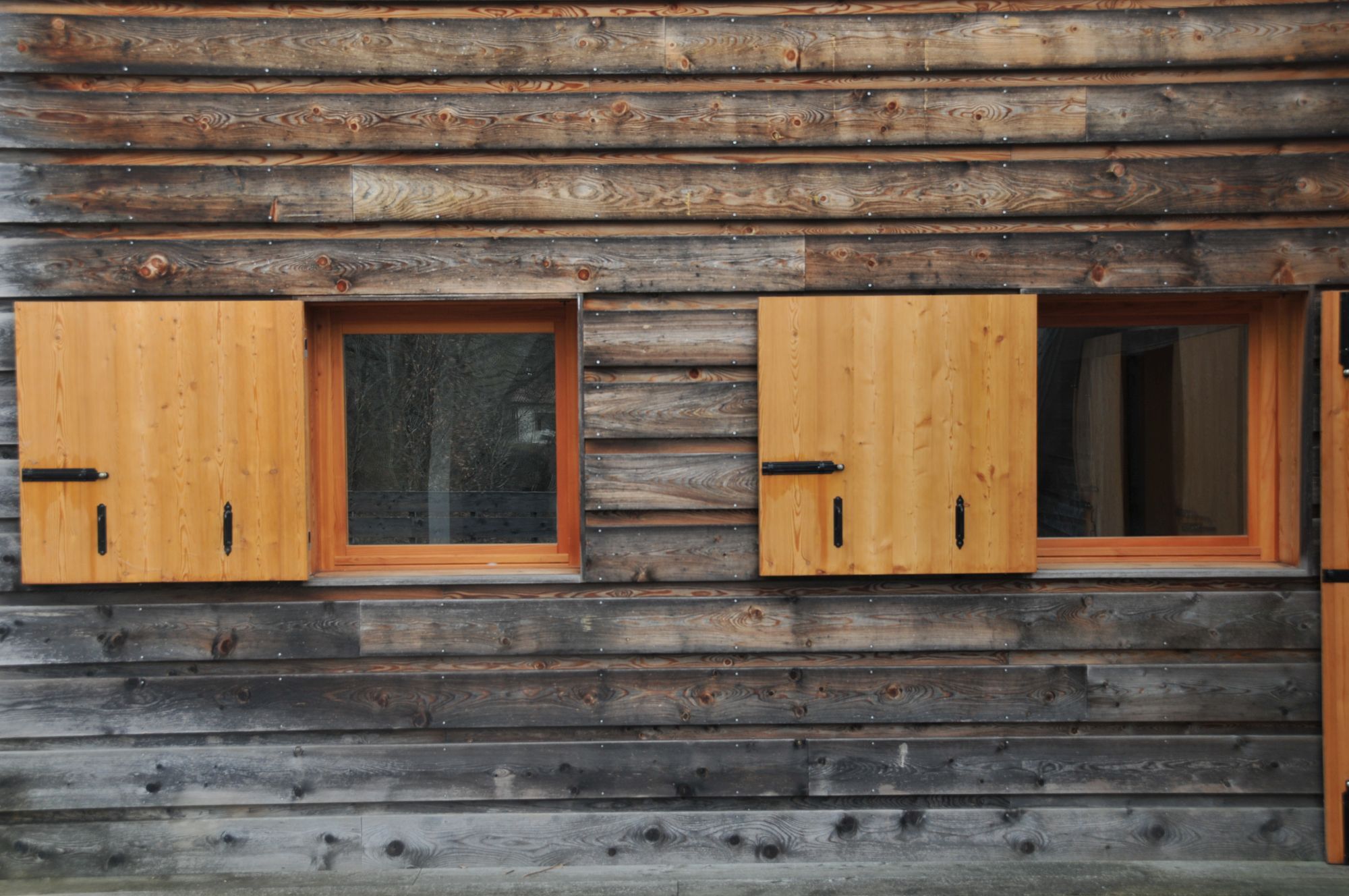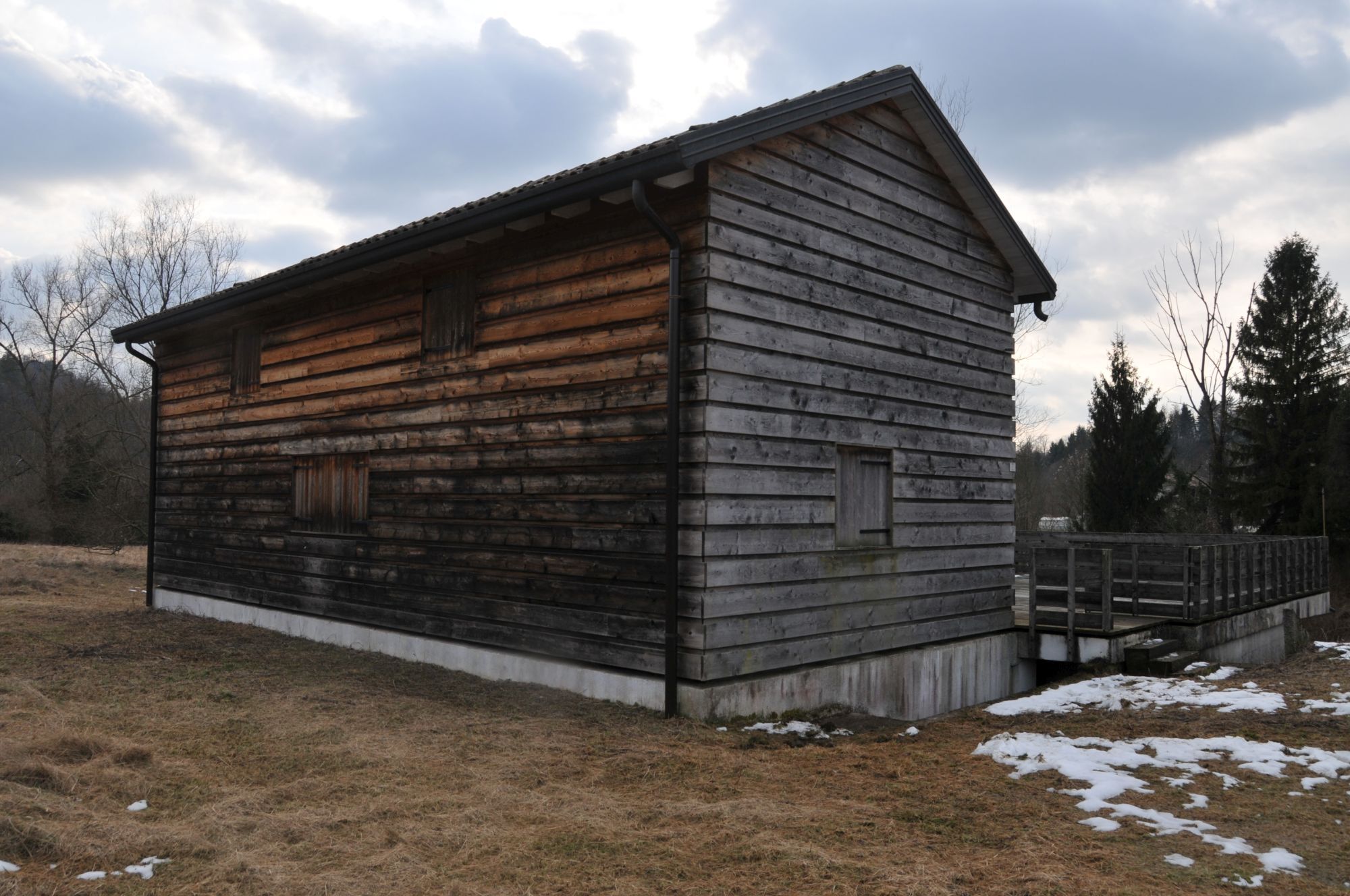 A balloon frame structure on a reinforced concrete platform is the building principle of this timber house.