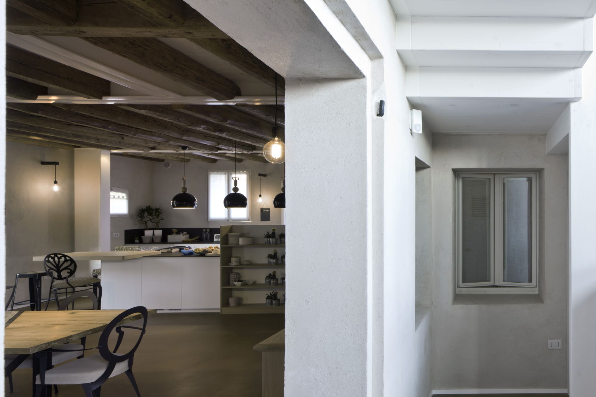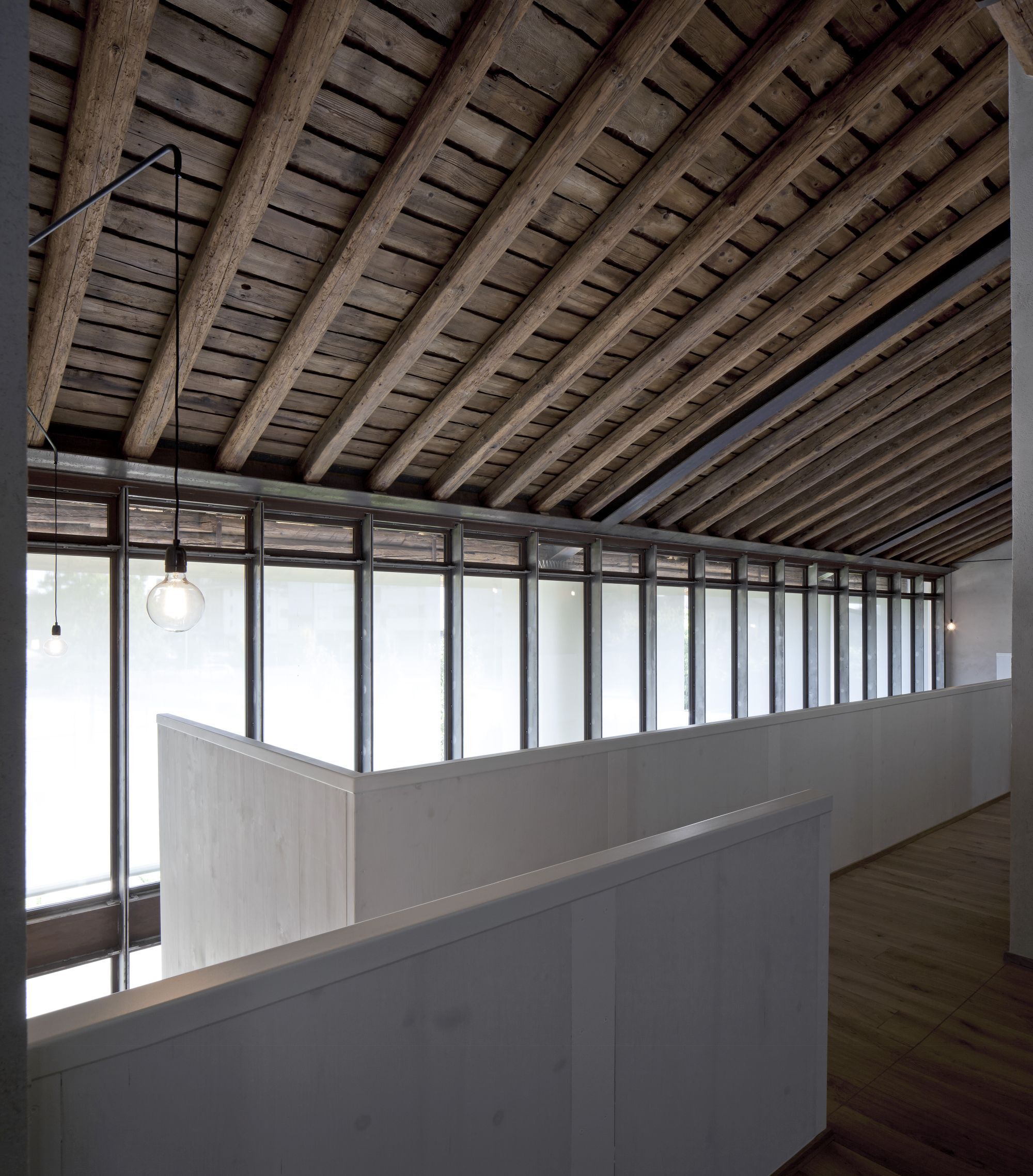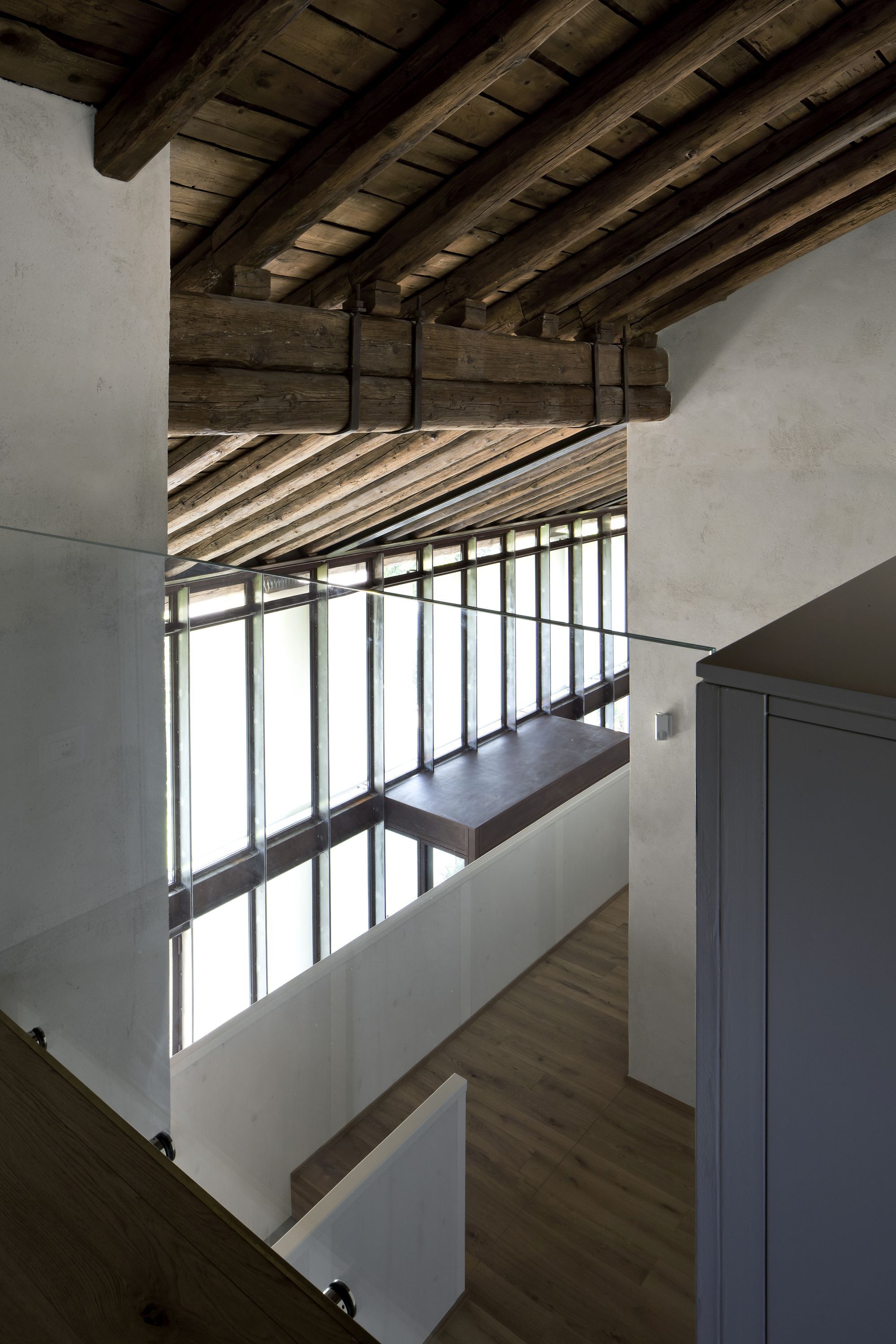 Ristrutturazione di una tipica casa colonica in cui il portico che collegava i due edifici principali è stato convertito in un open space abitativo completamente vetrato.