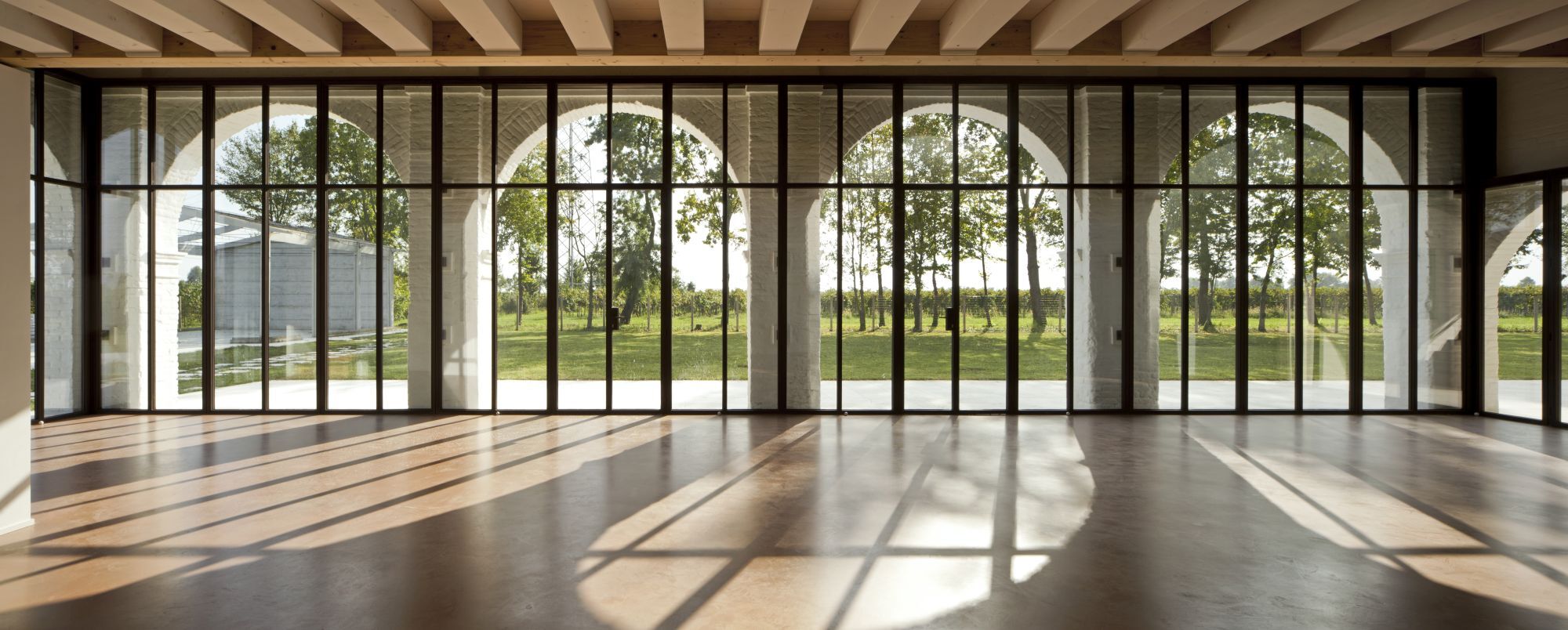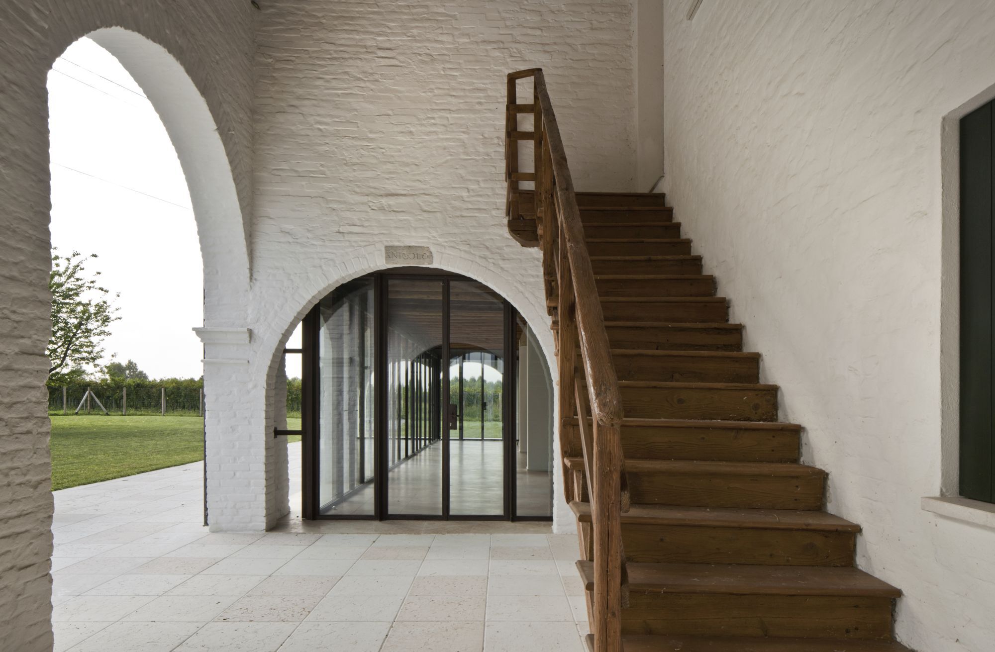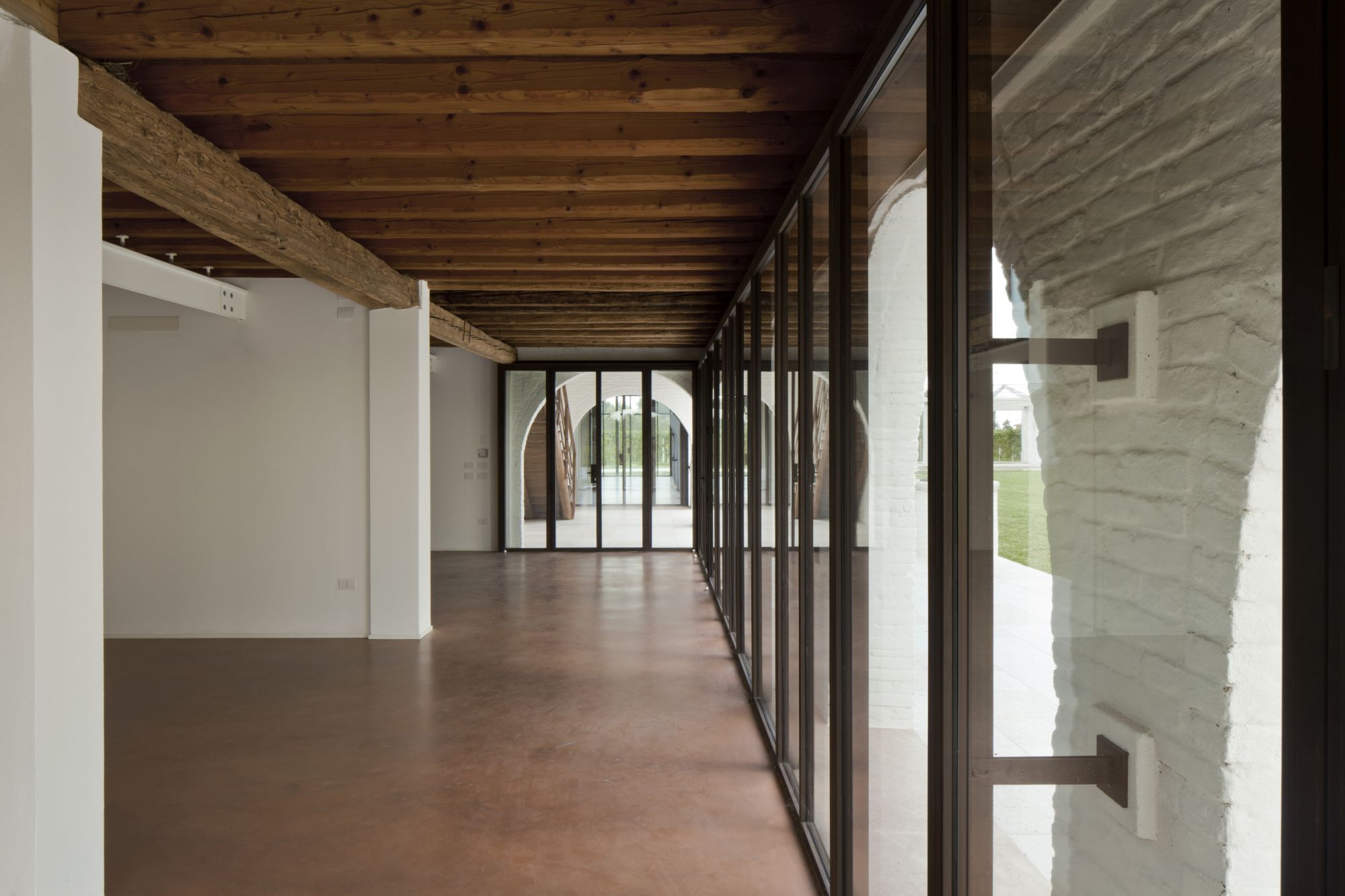 Ristrutturazione di una tipica casa colonica con annesse stalle porticate convertite in uno spazio abitativo completamente vetrato con soppalco.
