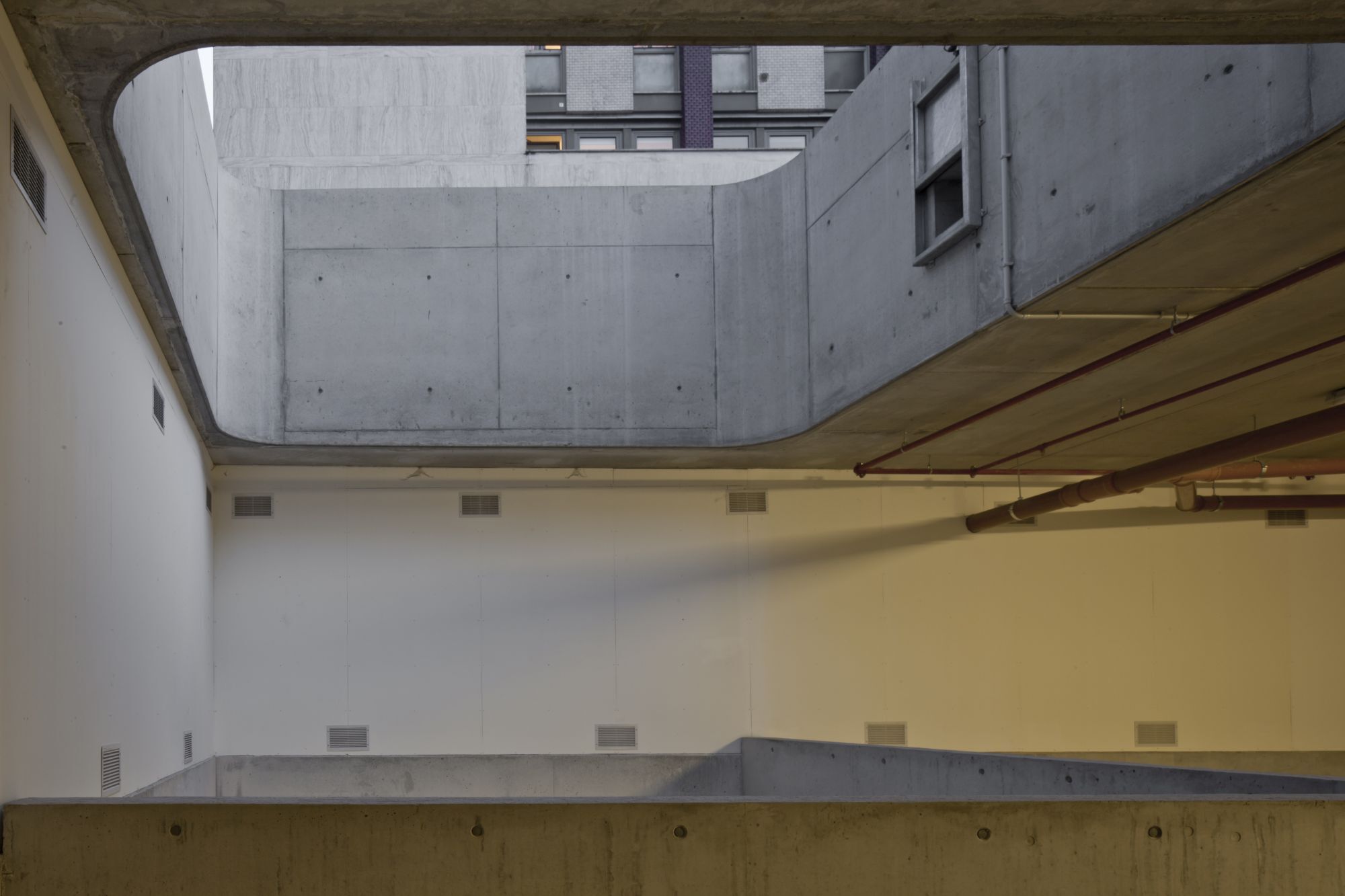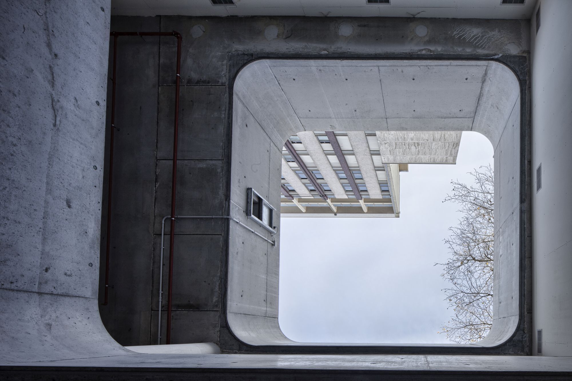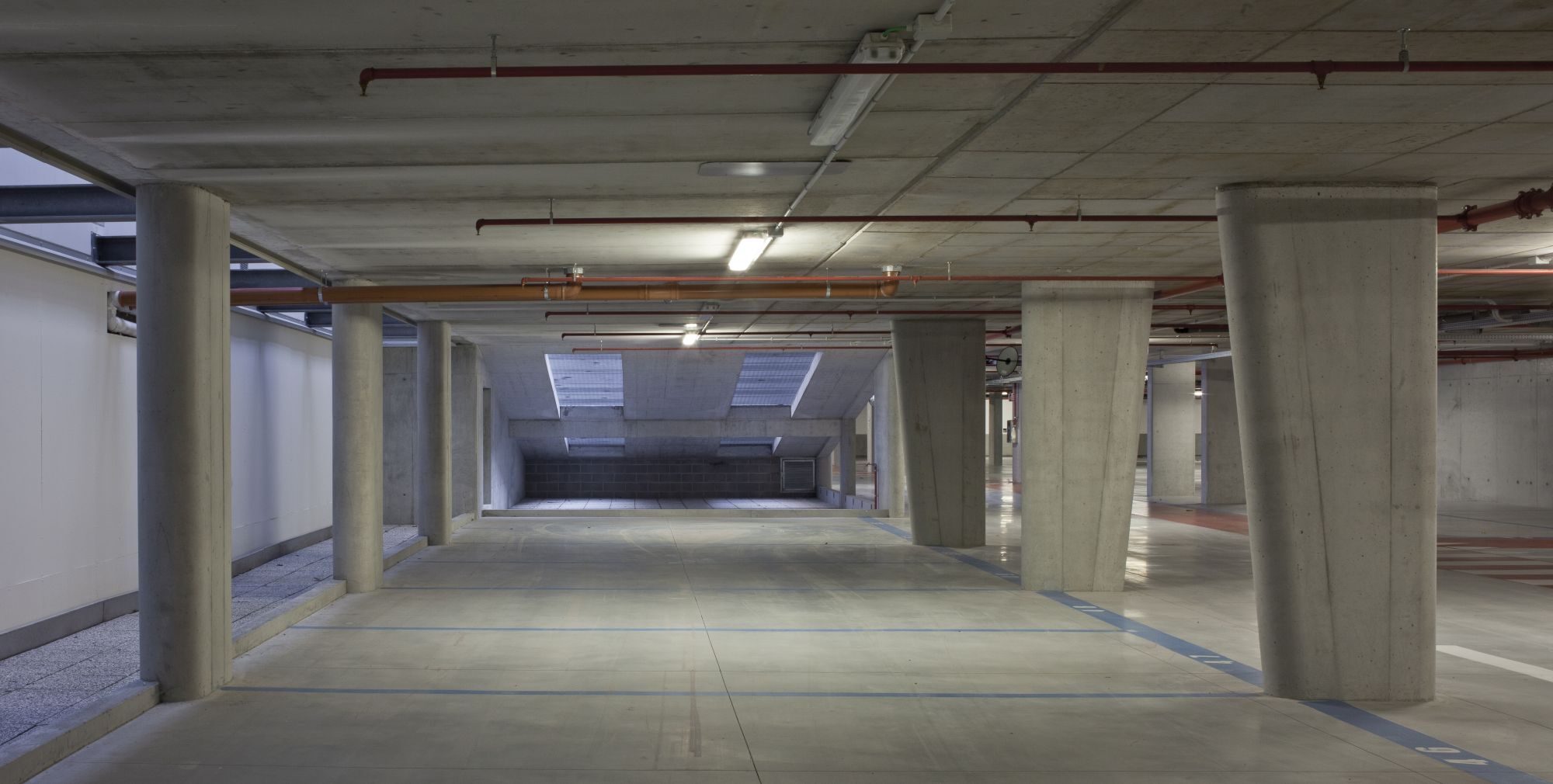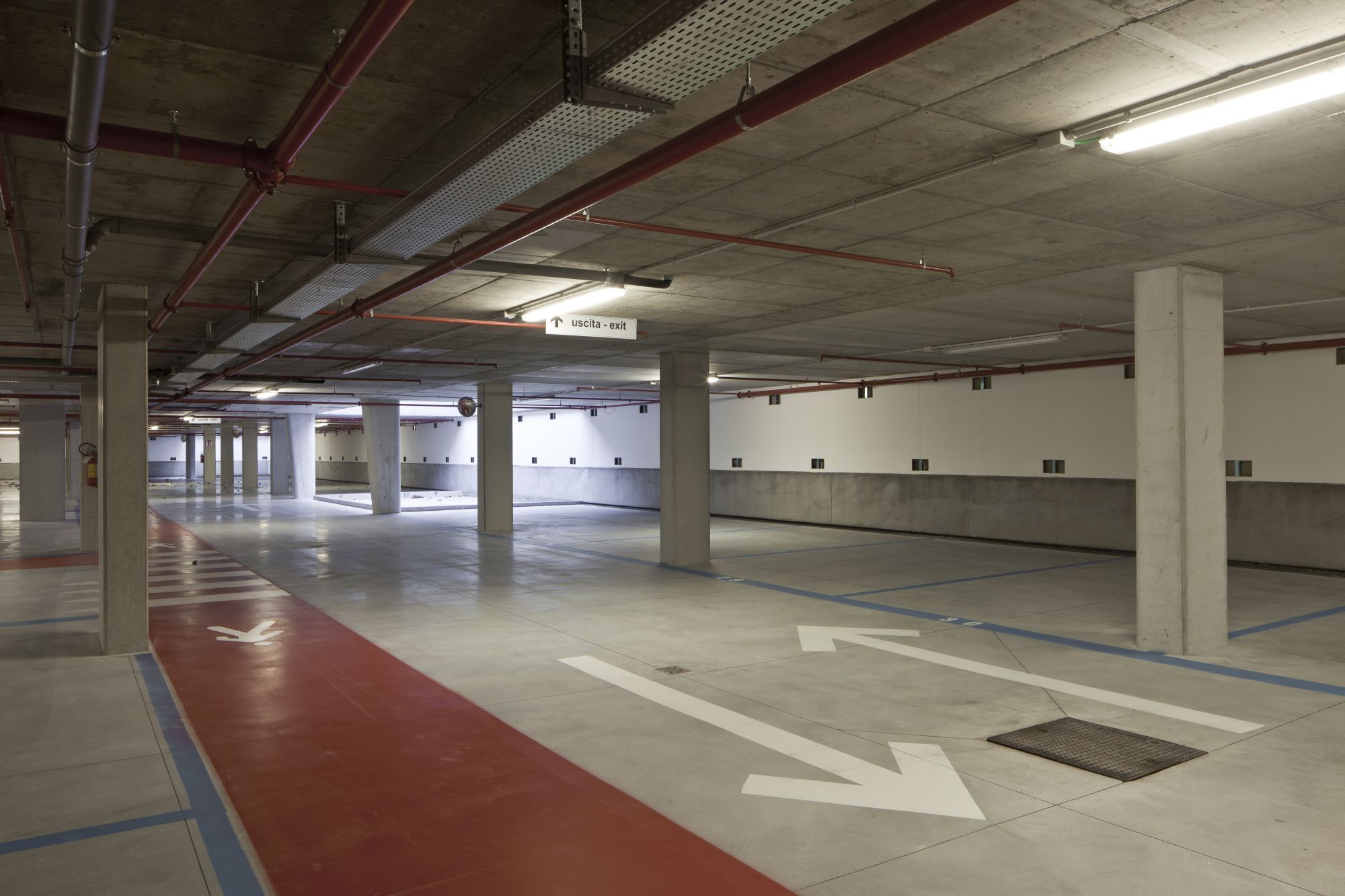 Progettazione paesaggistica di un'autorimessa interrata, che consiste nel concepire l'ingresso pedonale in superficie, le rampe e il sistema di ventilazione come oggetti architettonici in grado di qualificare una piazza altrimenti anonima.
