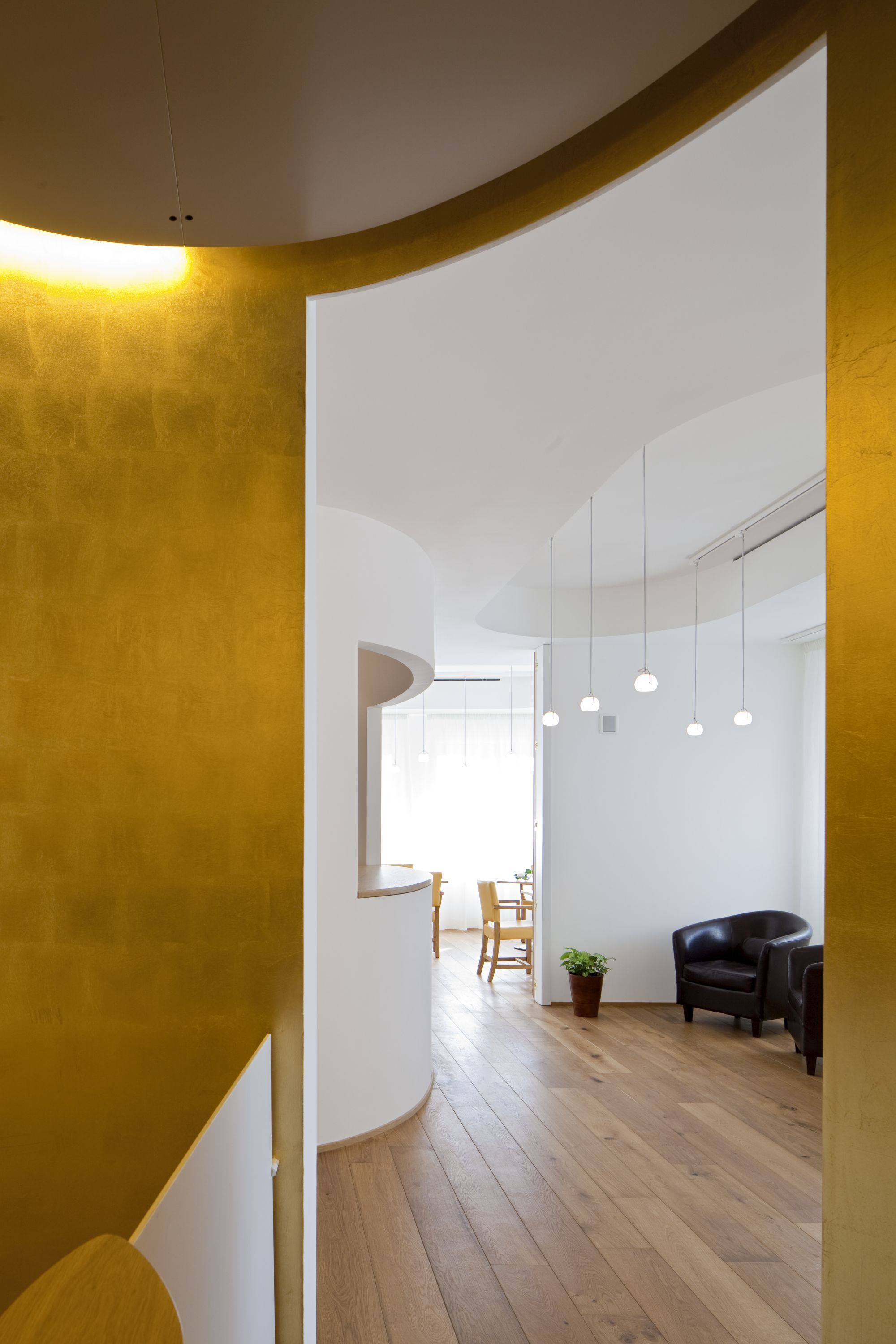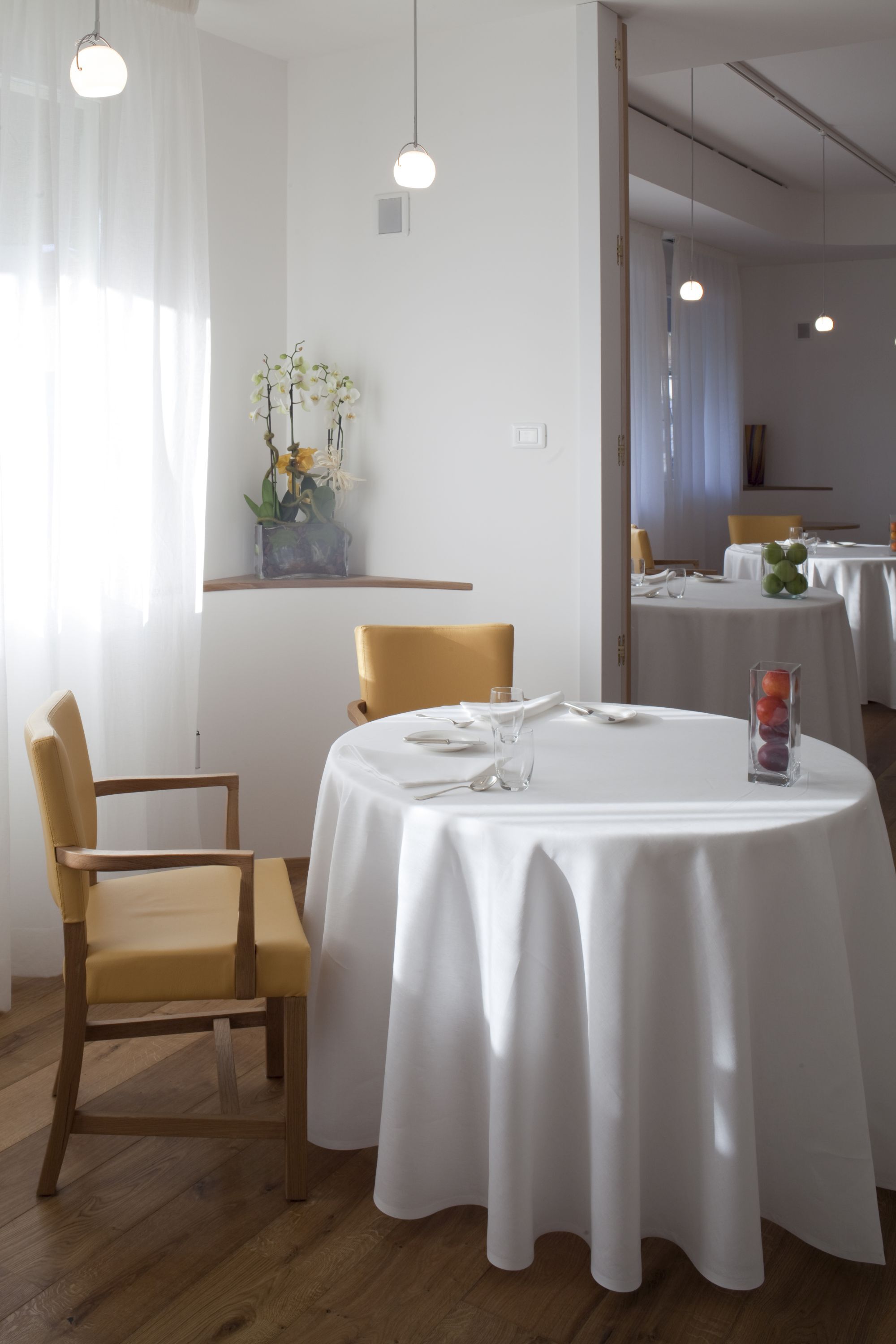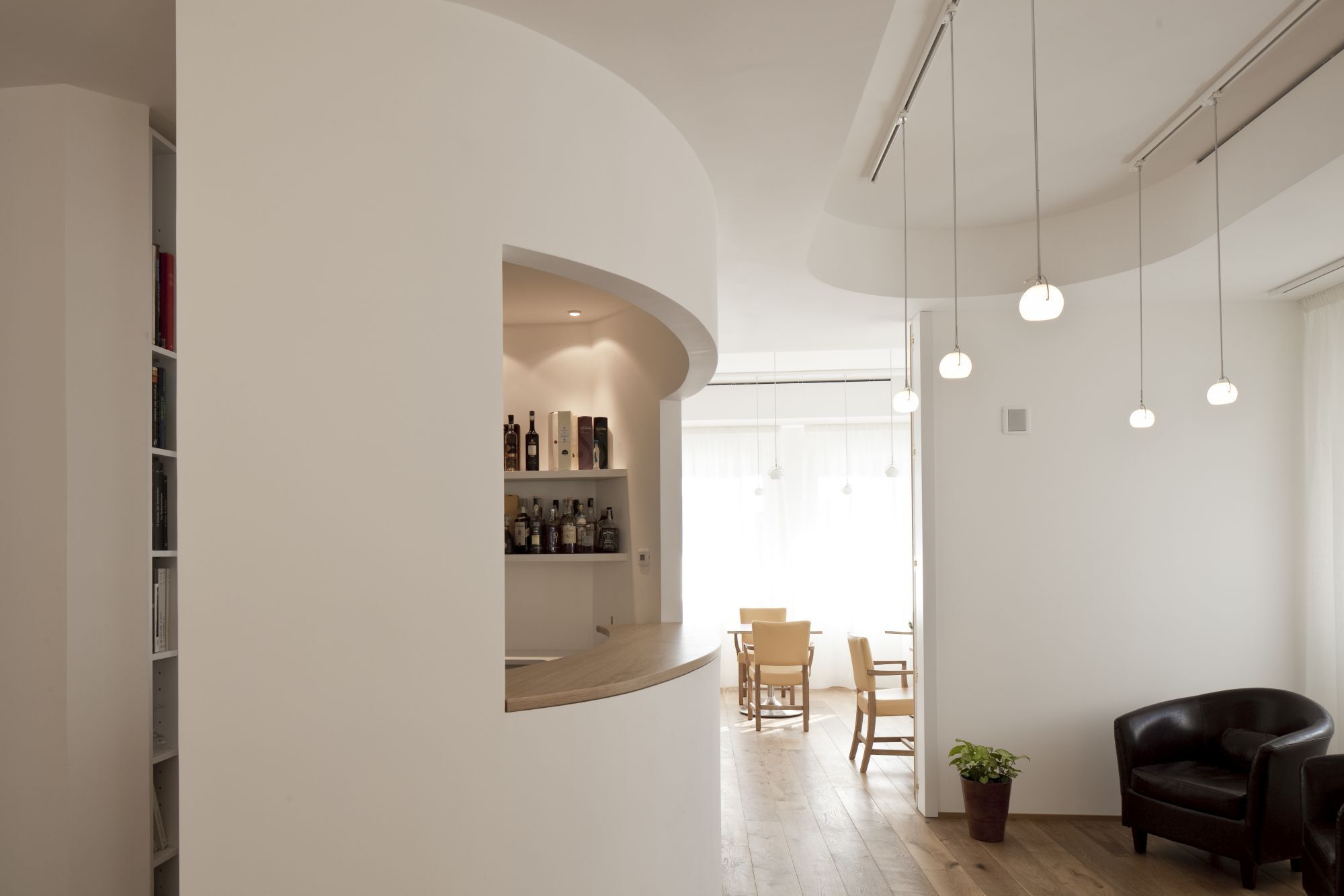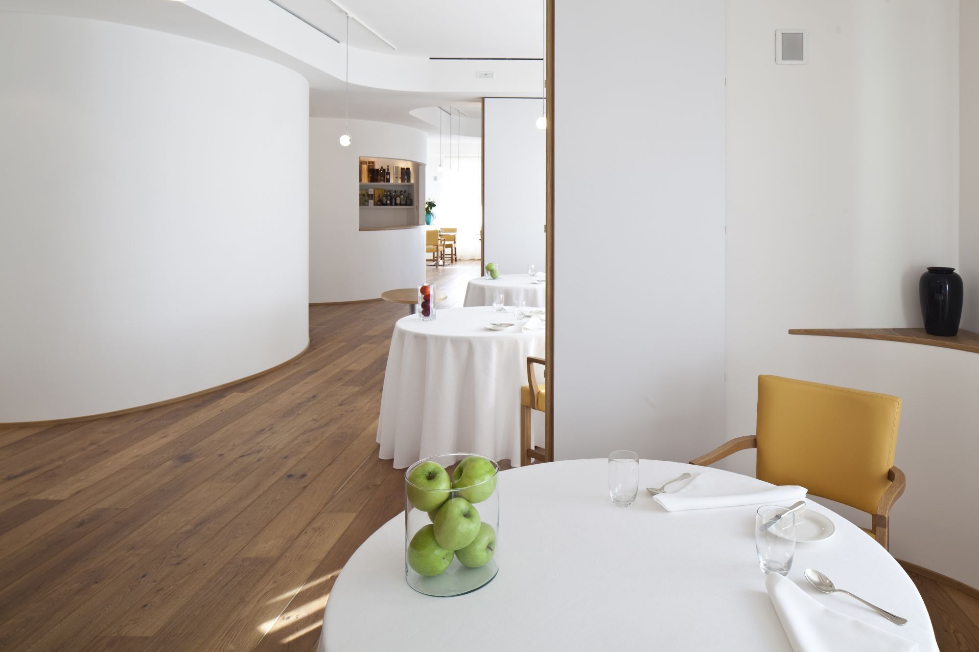 Ristrutturazione e interior design di un ristorante in cui la scala ellittica è assunta come nucleo del layout spaziale.